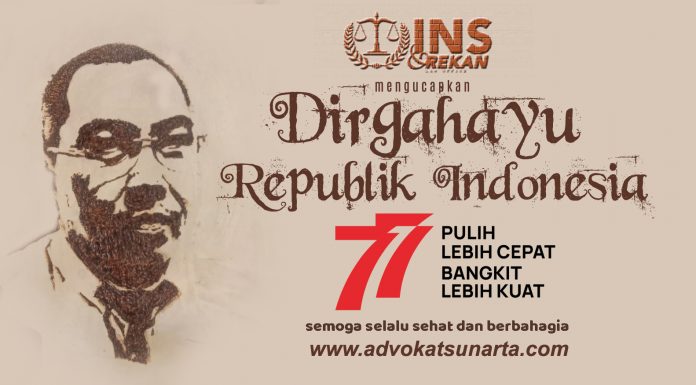 Hal itu ditegaskan Advokat I Nyoman Sunarta, SH dan Rekan dalam mengevaluasi perjalanan Kemerdekaan RI di usia ke 77 tahun serta mengucapkan Dirgahayu Republik Indonesia ke-77, “Pulih Lebih Cepat, Bangkit Lebih Kuat ini yang menjadi harapan kita semua diusia Indonesia ke 77 tahun ini,” ungkapnya.
